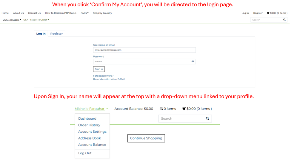 Ensure that you have a user profile created in the Pillar To Post Merchandise Emporium as this will automatically establish an account where ‘The Branding Company (TBC) Voucher’ purchases from the Pillar To Post Bucks Program will be deposited.